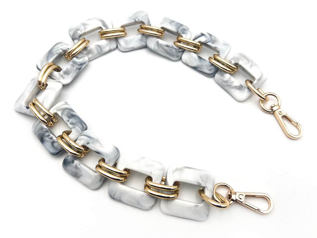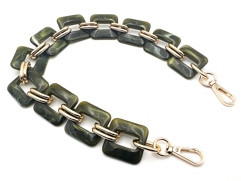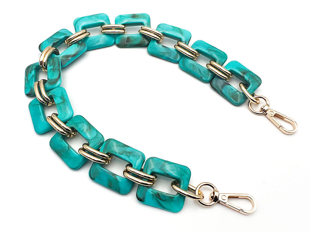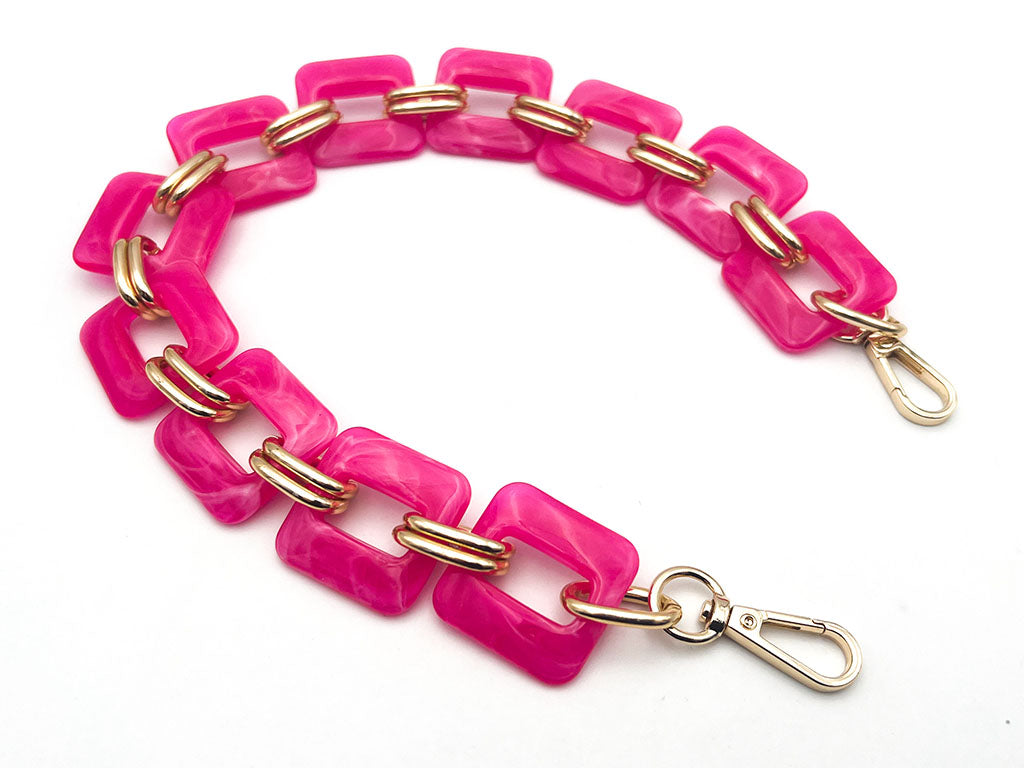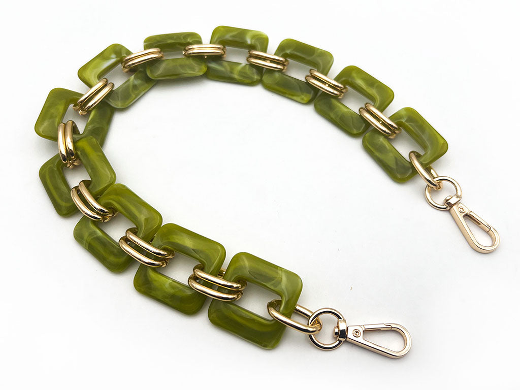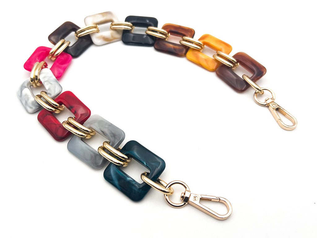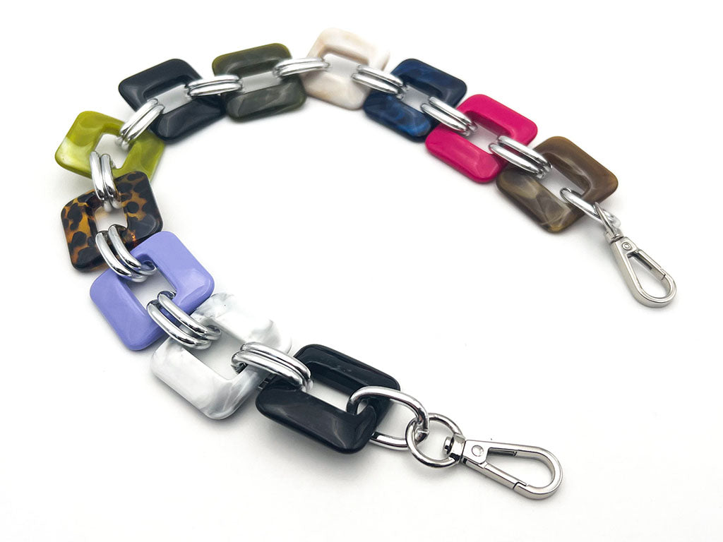 Catena resina square con anello e moschettone rettangolare, lunghezza da 46 a 56 cm.