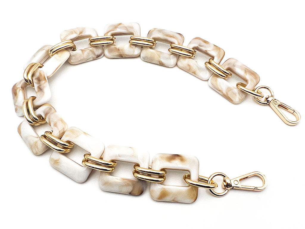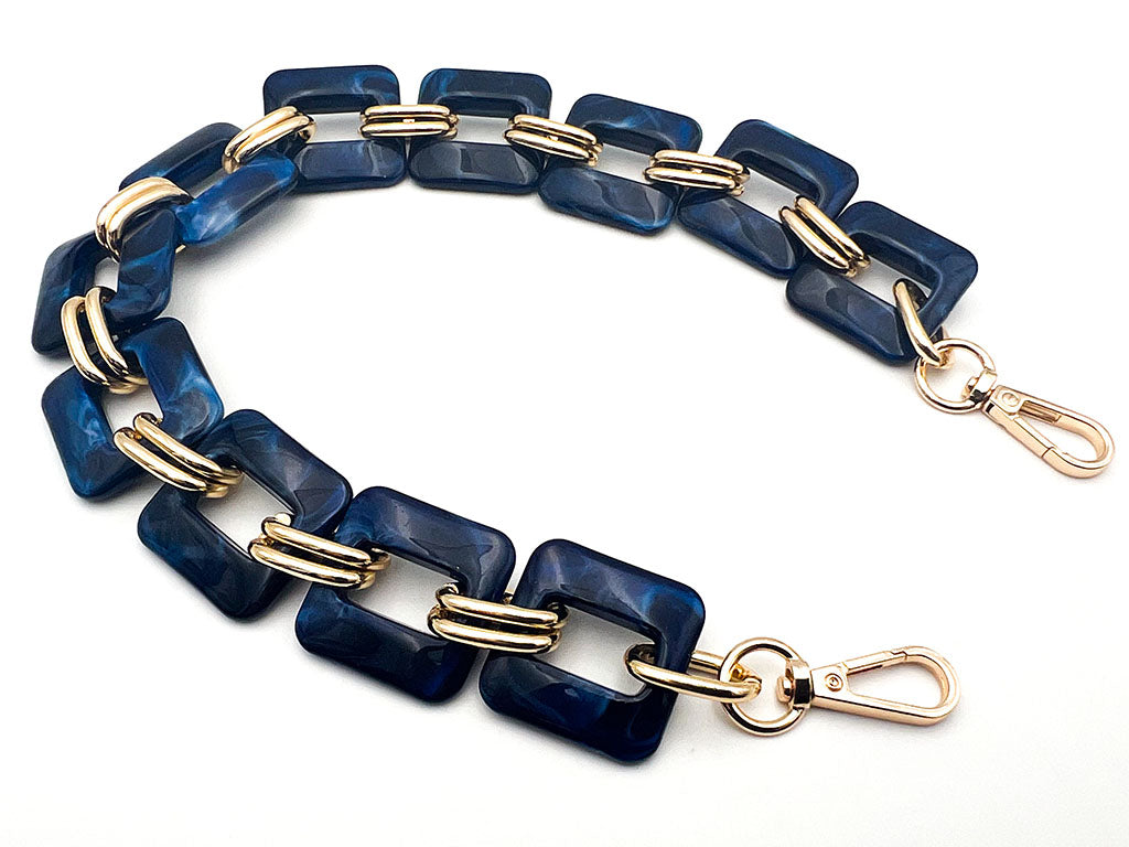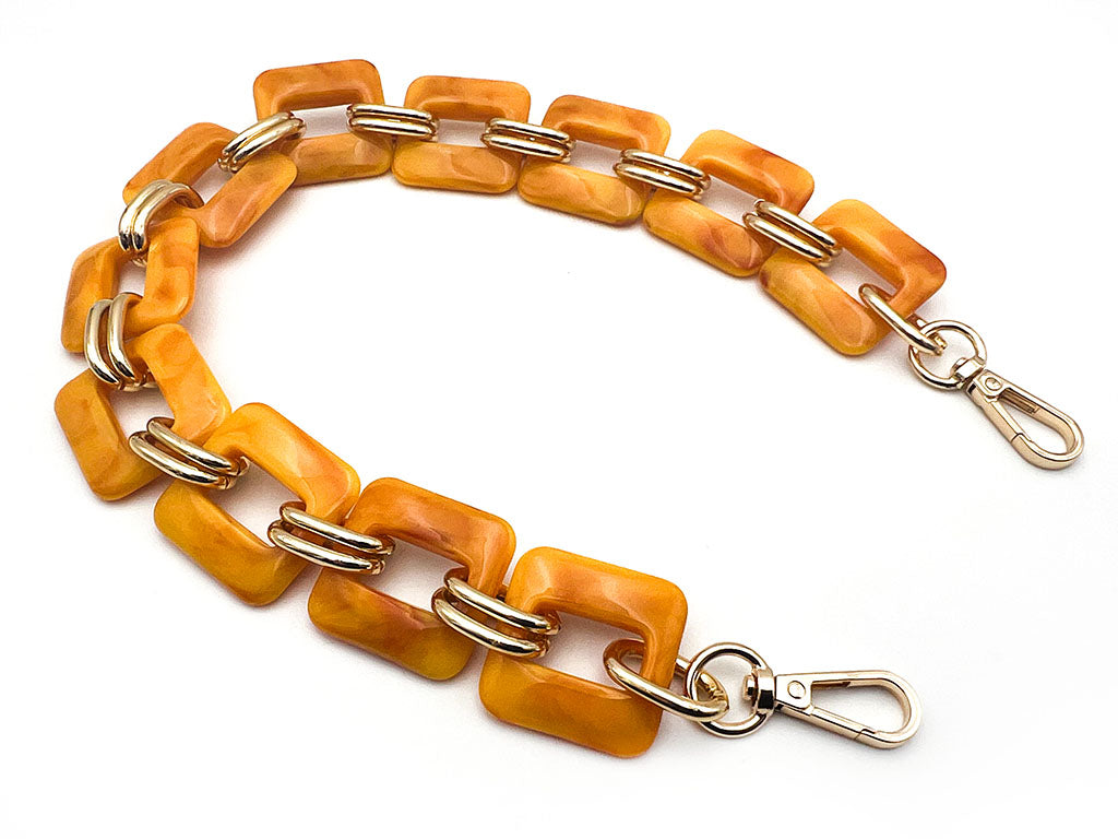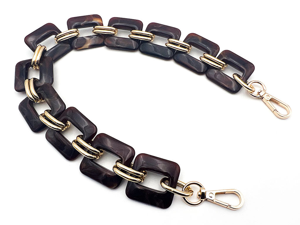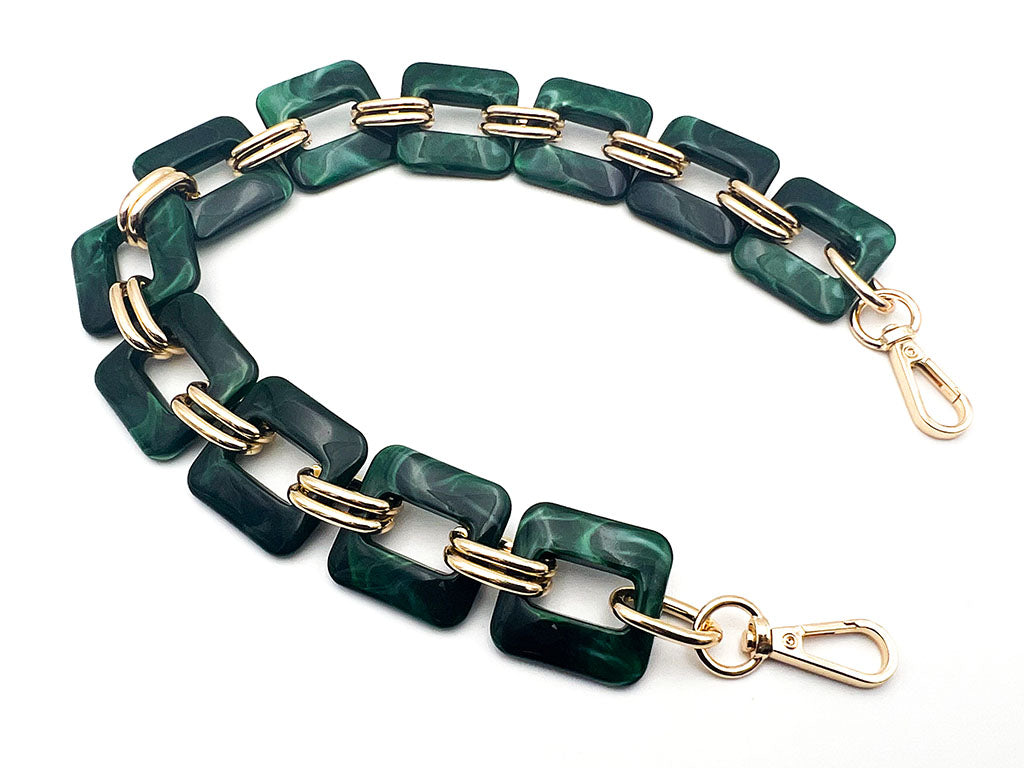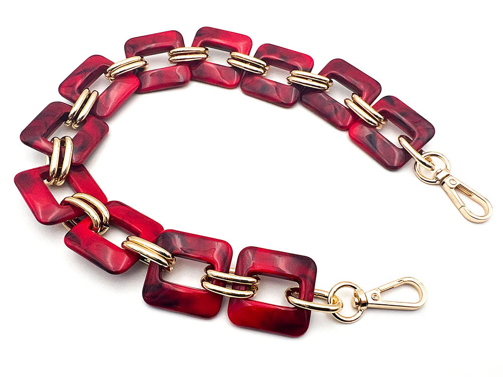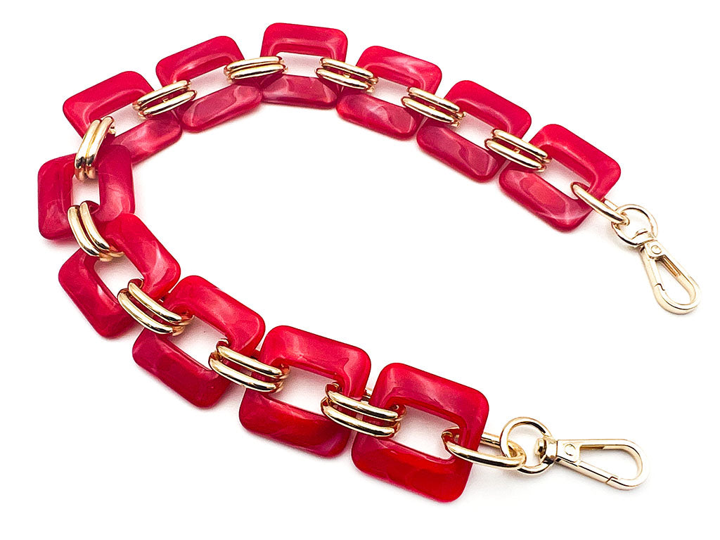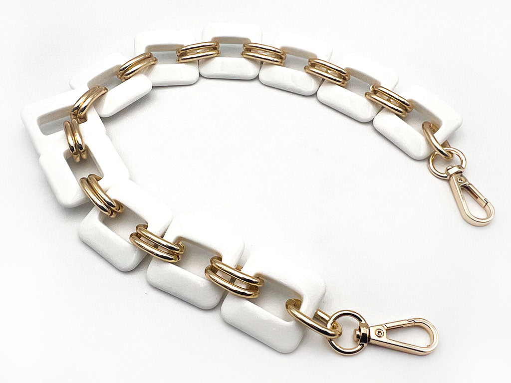 Catena resina square con anello e moschettone rettangolare, lunghezza da 46 a 56 cm.