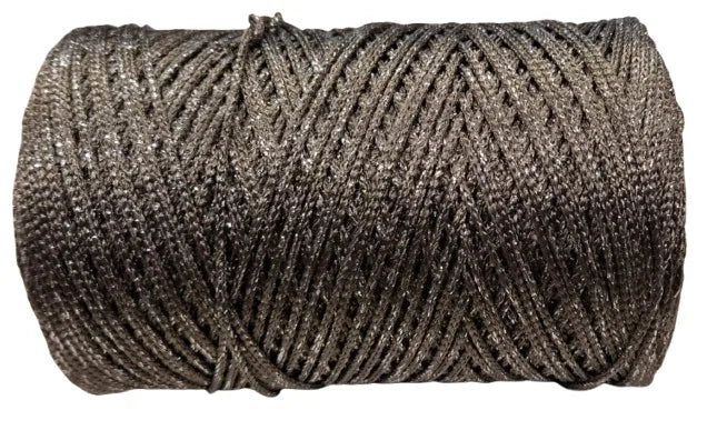 Cordino Thai LUREX da 500 gr , si lavora con uncinetto numero 3,5/ 4. Ideale per realizzare borse, zaini, cartelle, tappeti, tovagliette.