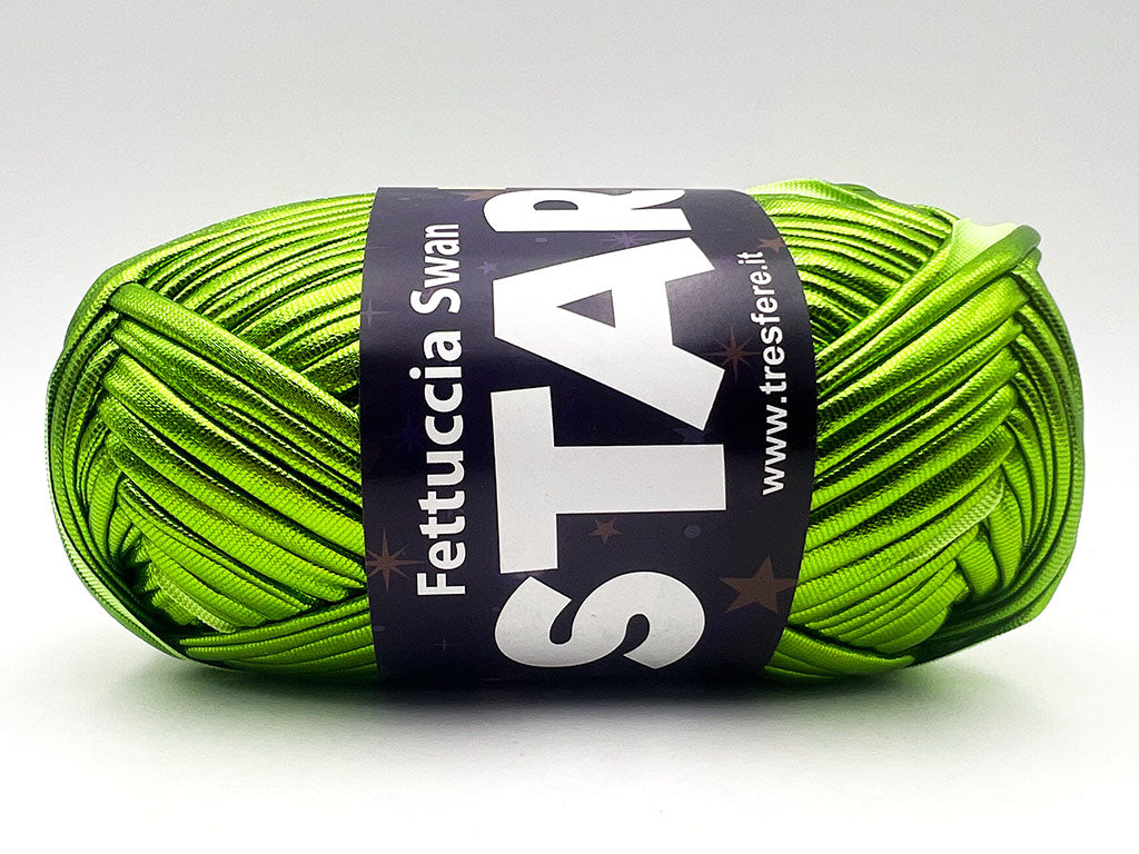 FETTUCCIA SWAN STAR,Gomitolo da 100 gr.40 mt, effetto lucido cangiante per questa meravigliosa e innovativa fettuccia leggermente elastica morbida leggera e facilmente lavorabile , uncinetti ferri 5-6 mm., per realizzare eleganti ed esclusive pochette borse e tutto quello che la tua fantasia ti suggerisce, 95%poliestere 5% spandex