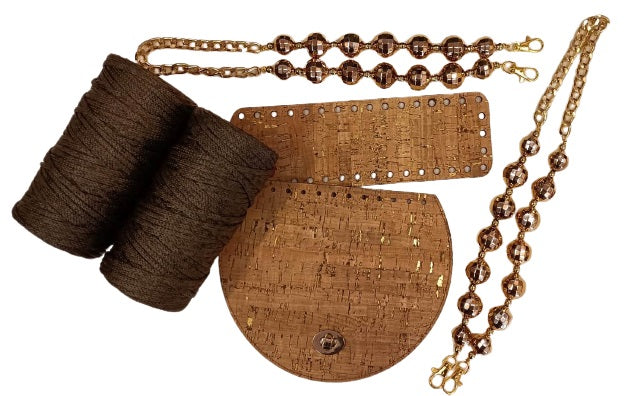 Kit Federica n.3 in vera pelle o sughero composto da patella rivestita anche internamente 20×25 cm, fondo 24x8 cm, cordino thai da 500 gr, coppia di manici gioello. I manici gioiello sono pezzi unici realizzati a mano, pertanto forma e colore possono variare leggermente dalla foto