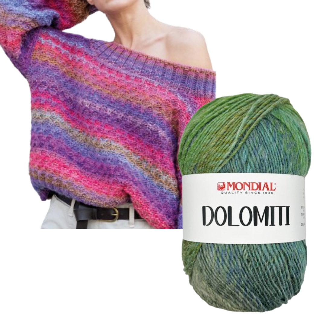 Dolomiti è uno stoppino stampato dai mille, accattivanti, effetti colore, molto semplice da lavorare e disponibile in gomitoli da 200 g che vi permetteranno di creare con poco dei simpaticissimi progetti in maglia. Adatto alle principianti, così come alle lavoratrici più esperte, è un filato unisex che si presta alla realizzazione di maglie operate, accessori, cardigan ed elementi d’arredo per la casa. Insomma, tutto quello che la vostra fantasia può creare! 70% Microfibra PC 30% Lana Vergine. Peso 200 g - lunghezza 400 m. Si lavora con ferri 5.5 - 6.5. Si lavora con uncinetto 4.5 - 5
