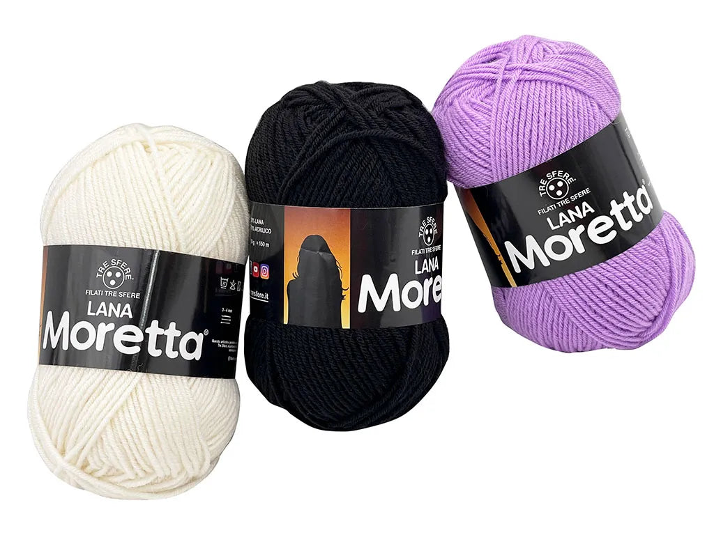 ana LaMoretta, composizione 30% lana vergine 70% acrilico premium. La torsione perfetta della lana rende questo filato morbido, soffice e caldo. Pilling pari a zero per una lana versatile, perfetta per ogni tecnica di lavorazione e per capi donna, uomo e bambino. Adatta anche a borse e accessori. L”ampia cartella colori permette bellissime lavorazioni Granny. CONFEZIONE DA 5 GOMITOLI DA 50 grammi che sviluppano 150 metri, FERRI UNCINETTI 3-4, certificata oeko-tex®
