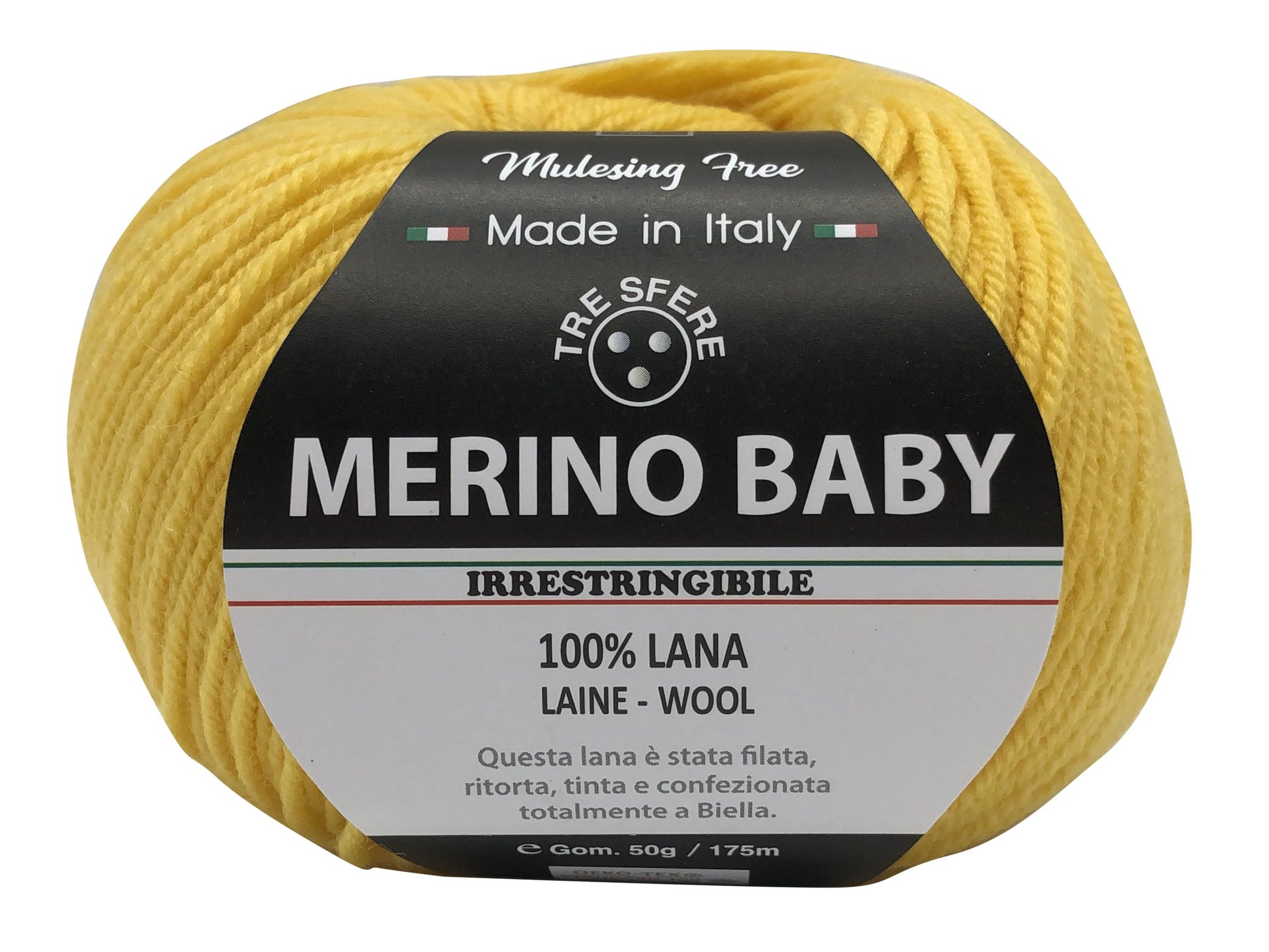 Pura lana merino baby soffice e leggera, 100% pura lana vergine, mulesing free, irrestringibile, certificata oeko-tex®, confezione da 10 gomitoli da 50 grammi che sviluppano 175 metri, ferri 3-3,5, prodotto pettinato filato ritorto tinto e confezionato interamente in Italia a Biella, peso garantito. Splendida lana adatta per capi di abbigliamento per bambino, copertine per bambino ma anche per maglieria e capi per adulti.
