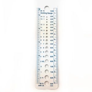 Misuratore dritto per ferri da maglia con diverse fessure circolari che permettono di misurare il numero dei ferri con il semplice inserimento all”interno. Confezione da 1 pezzo