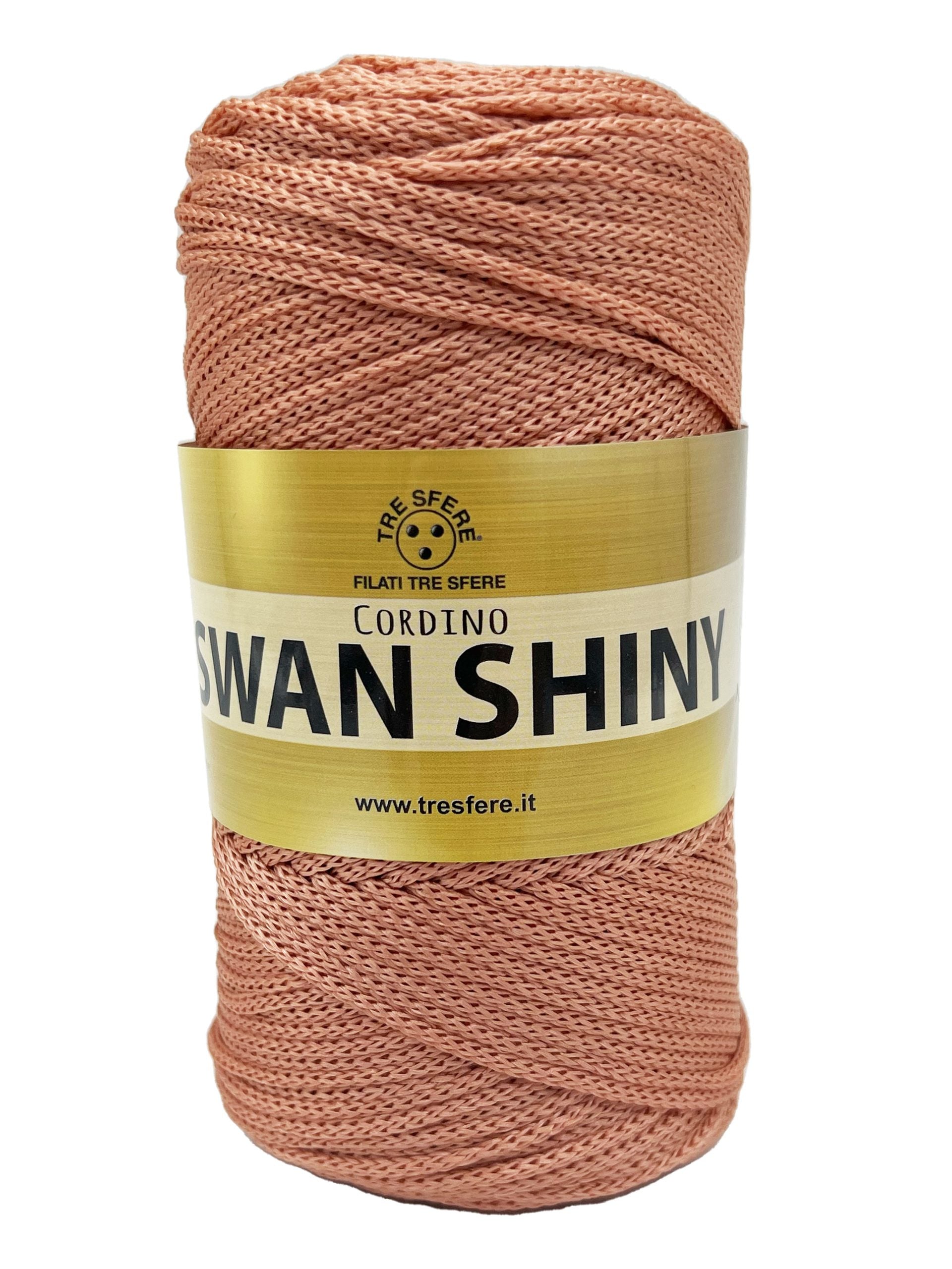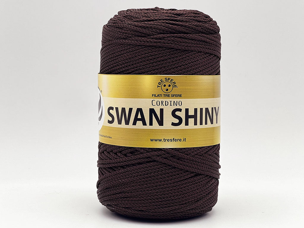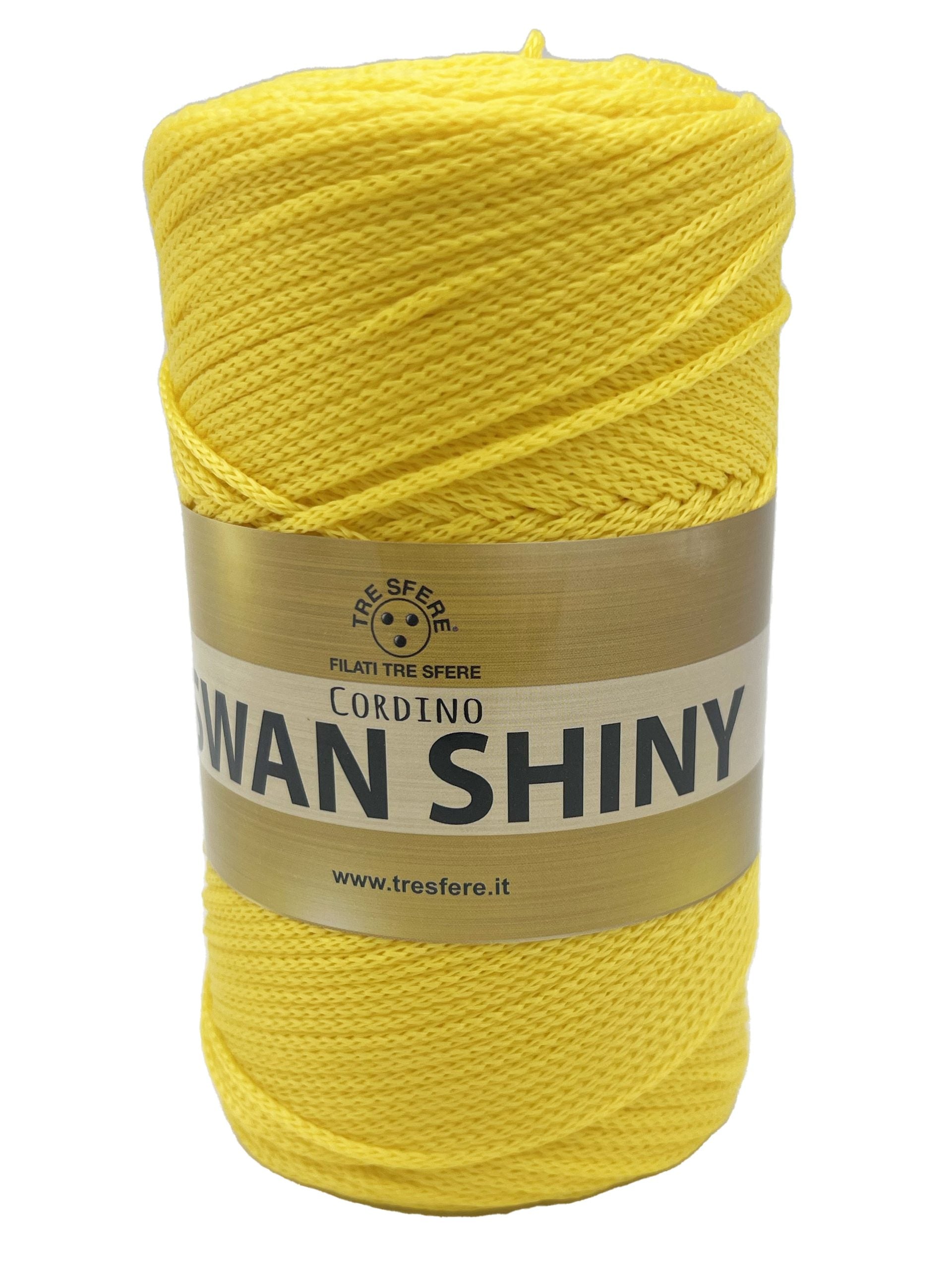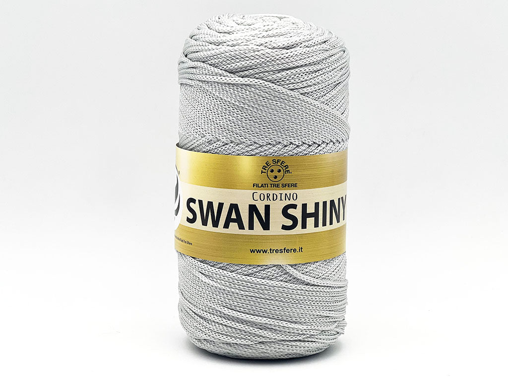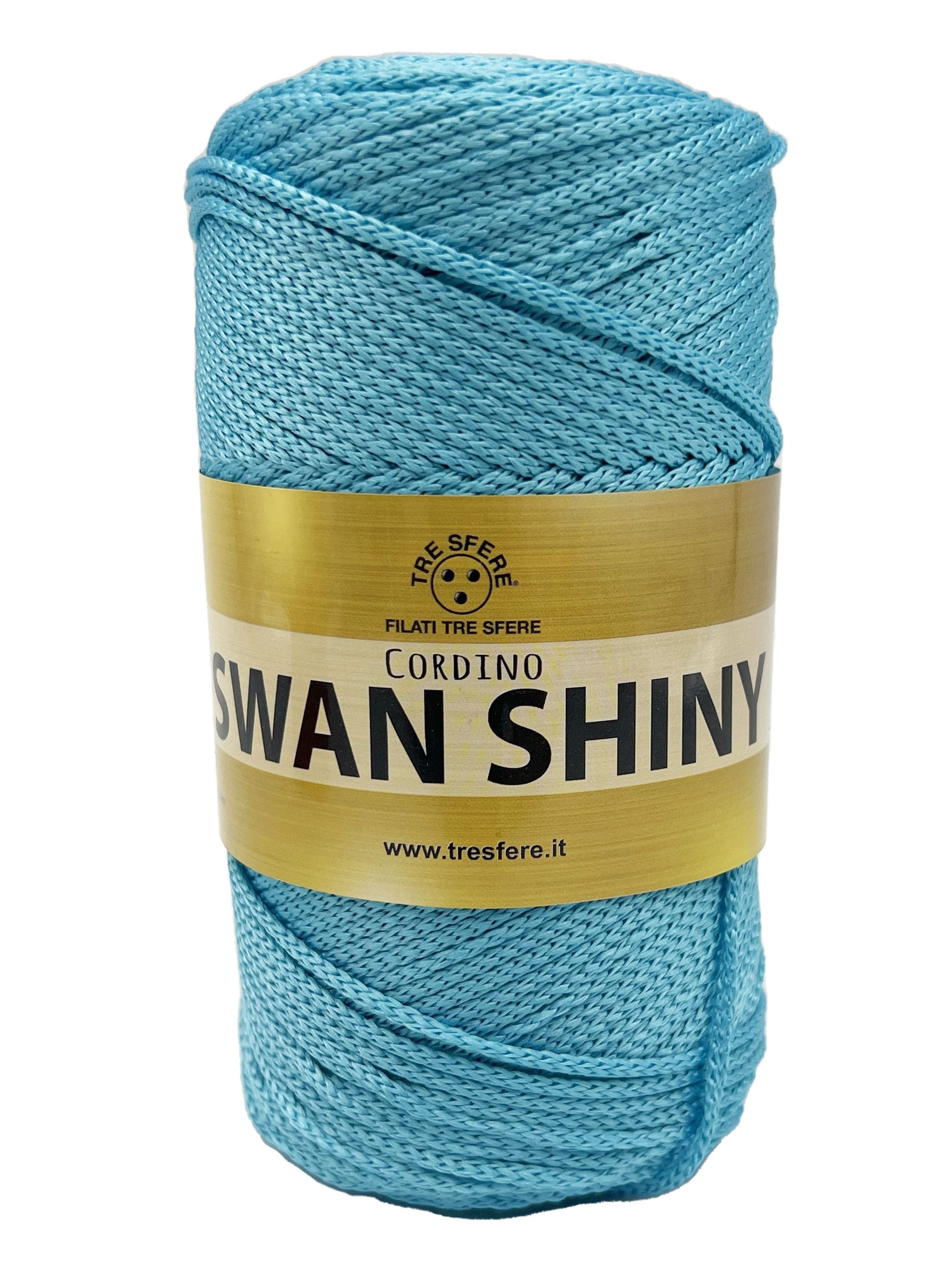 Cordino Swan Shiny, una versione più brillante del famoso Swan Black e più morbida, disponibile in rocche da 250 grammi 250 metri, spessore 2 mm, composizione 100% polipropilene, ferri uncinetti 2 mm 4 mm, fantastico per realizzare borse all’uncinetto e per lavori Handmade crochet