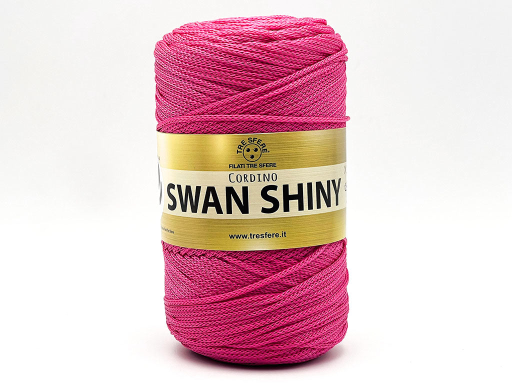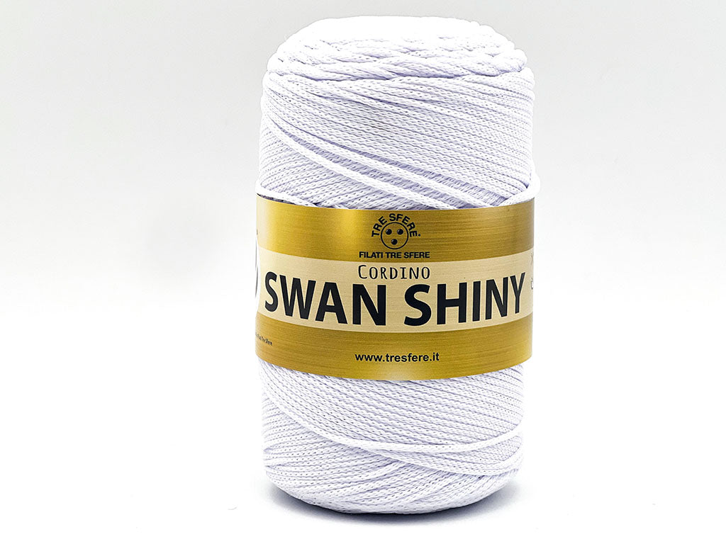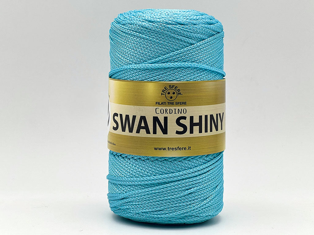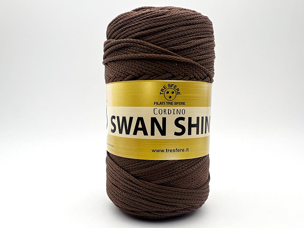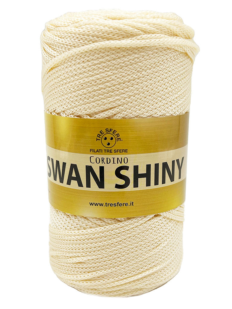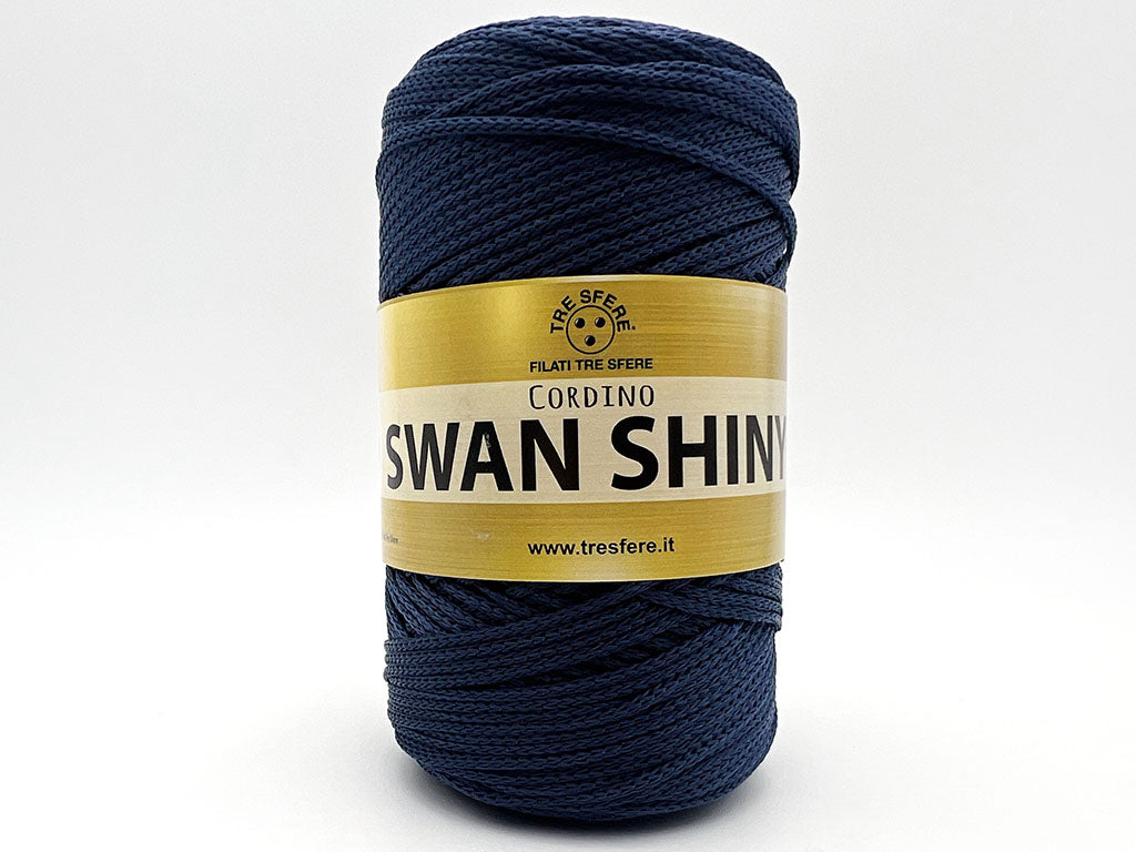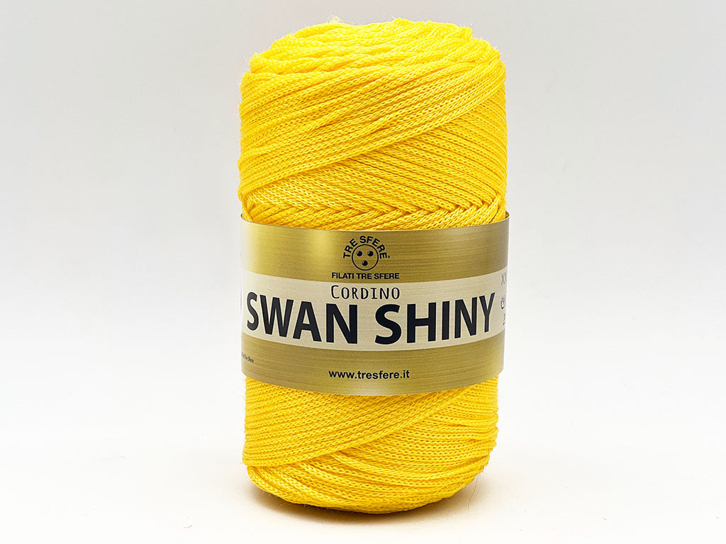 Cordino Swan Shiny, una versione più brillante del famoso Swan Black e più morbida, disponibile in rocche da 250 grammi 250 metri, spessore 2 mm, composizione 100% polipropilene, ferri uncinetti 2 mm 4 mm, fantastico per realizzare borse all’uncinetto e per lavori Handmade crochet