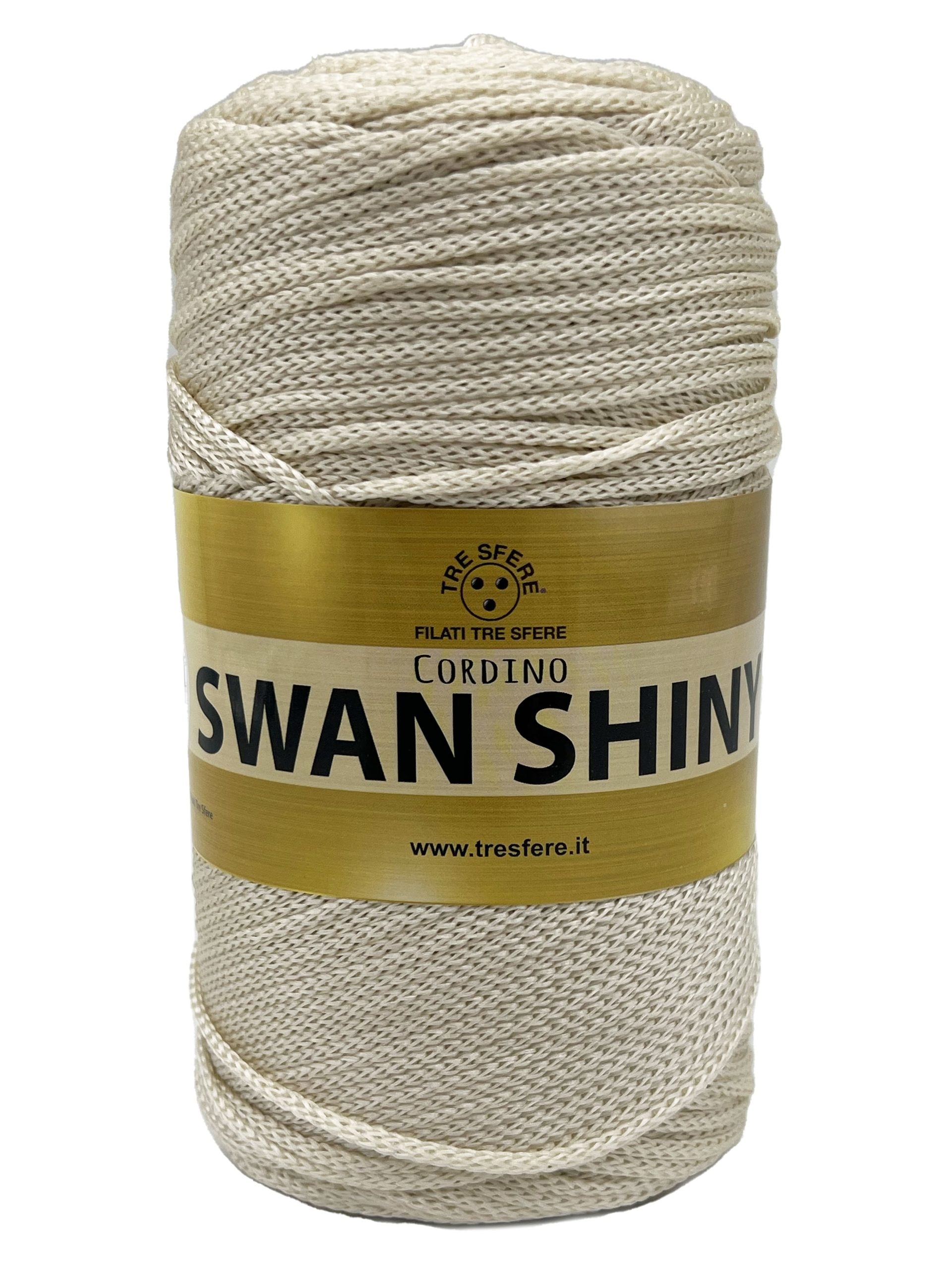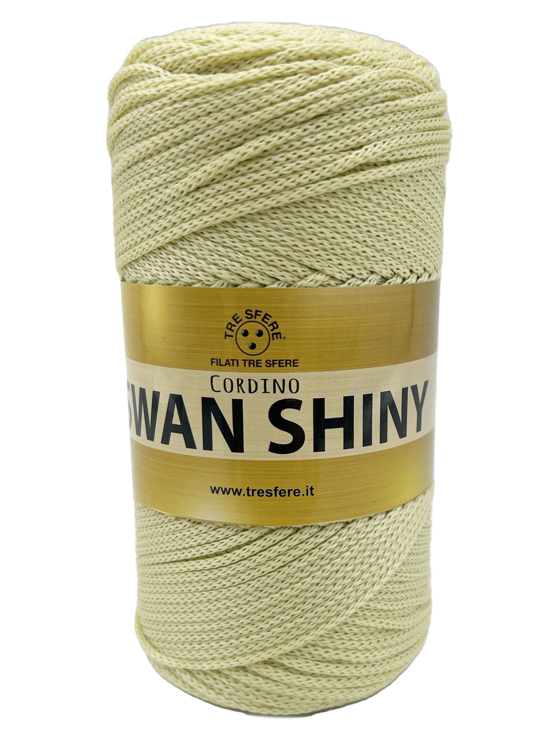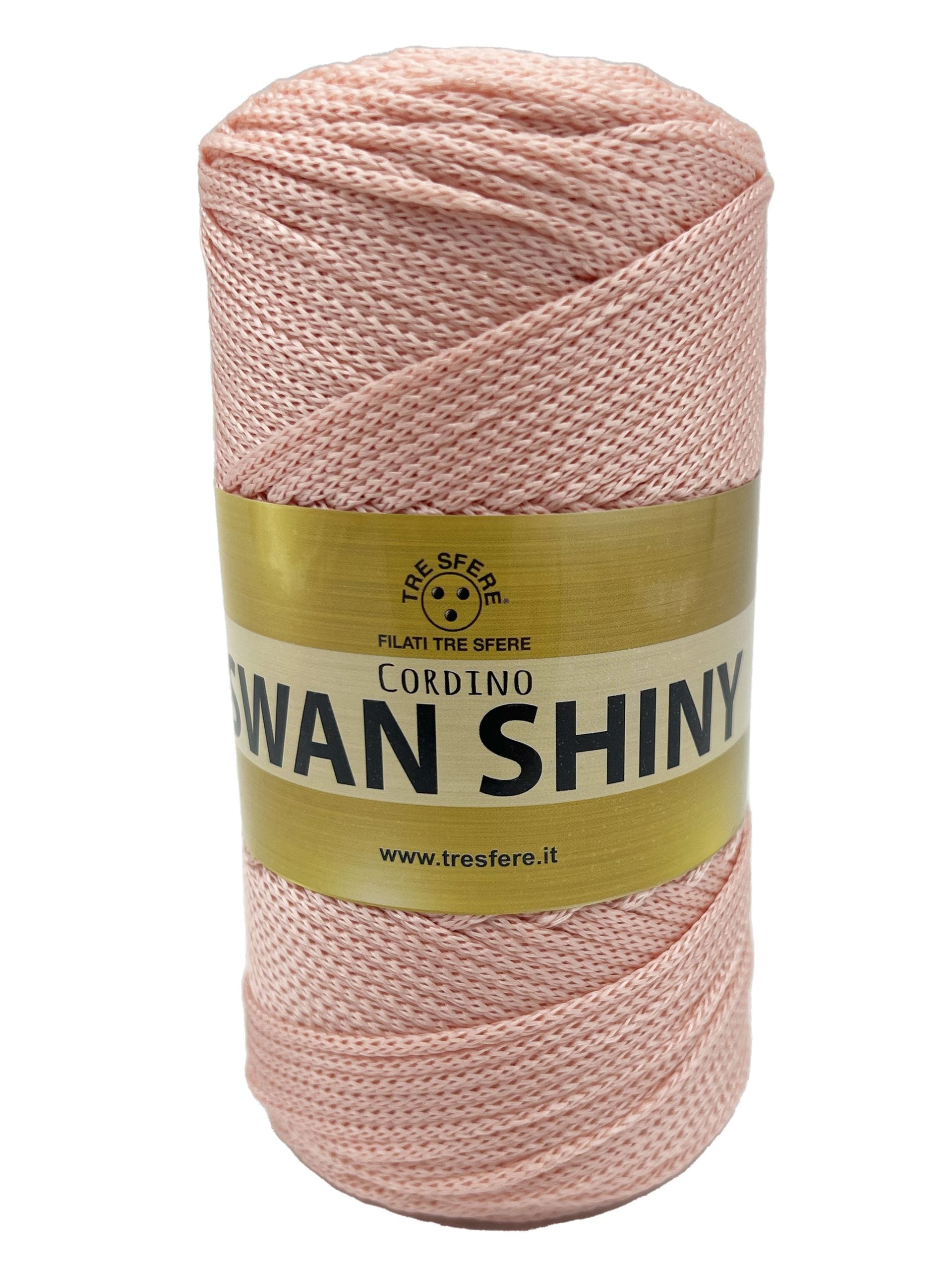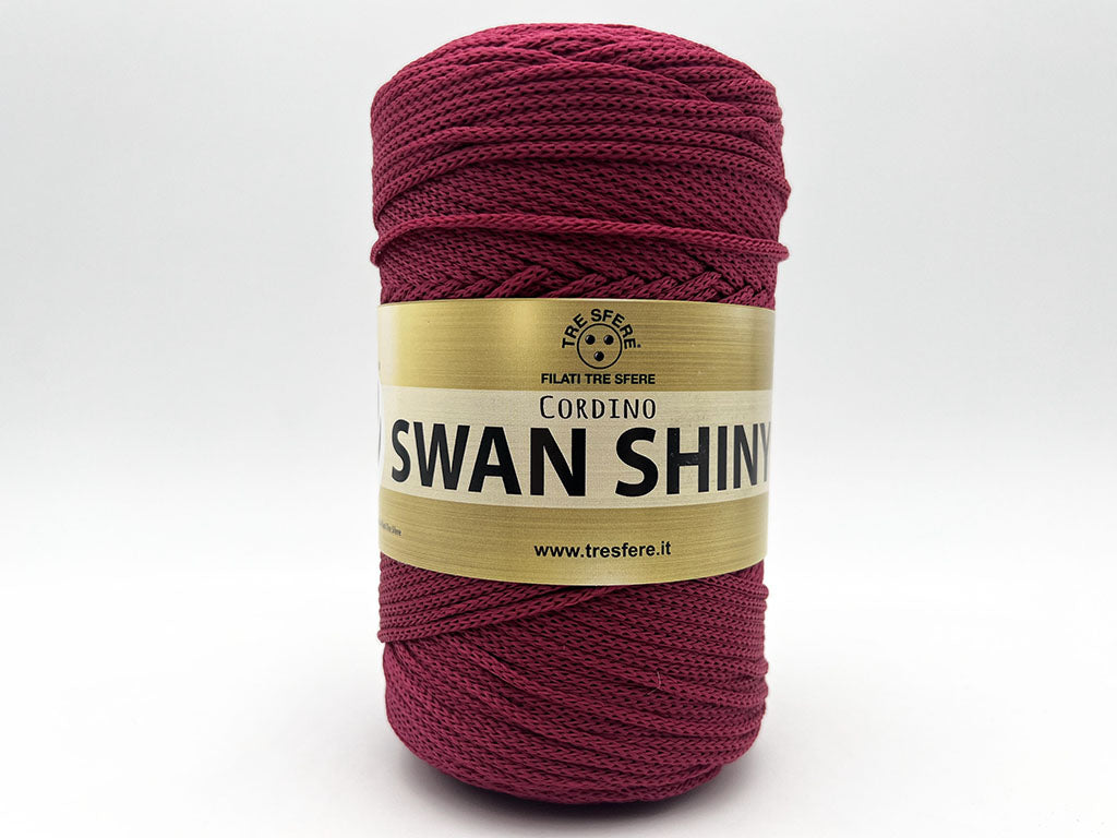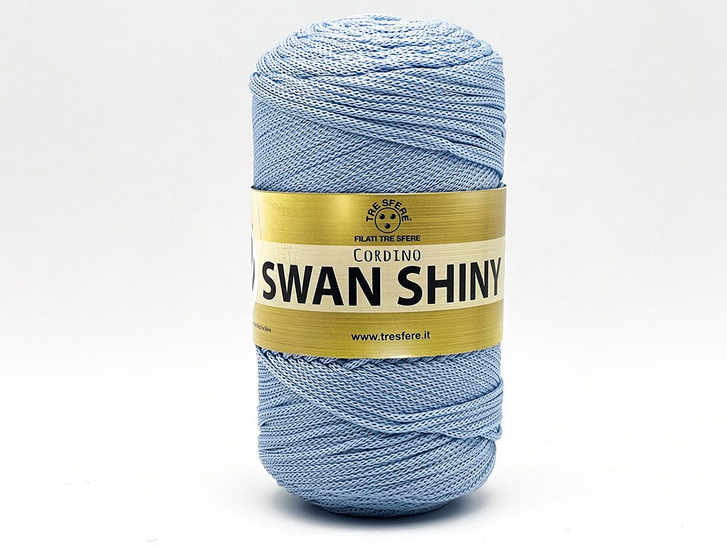 Cordino Swan Shiny, una versione più brillante del famoso Swan Black e più morbida, disponibile in rocche da 250 grammi 250 metri, spessore 2 mm, composizione 100% polipropilene, ferri uncinetti 2 mm 4 mm, fantastico per realizzare borse all’uncinetto e per lavori Handmade crochet
