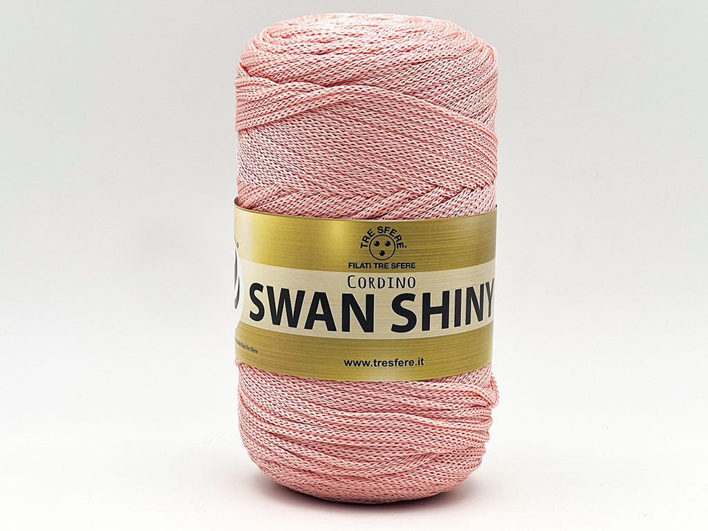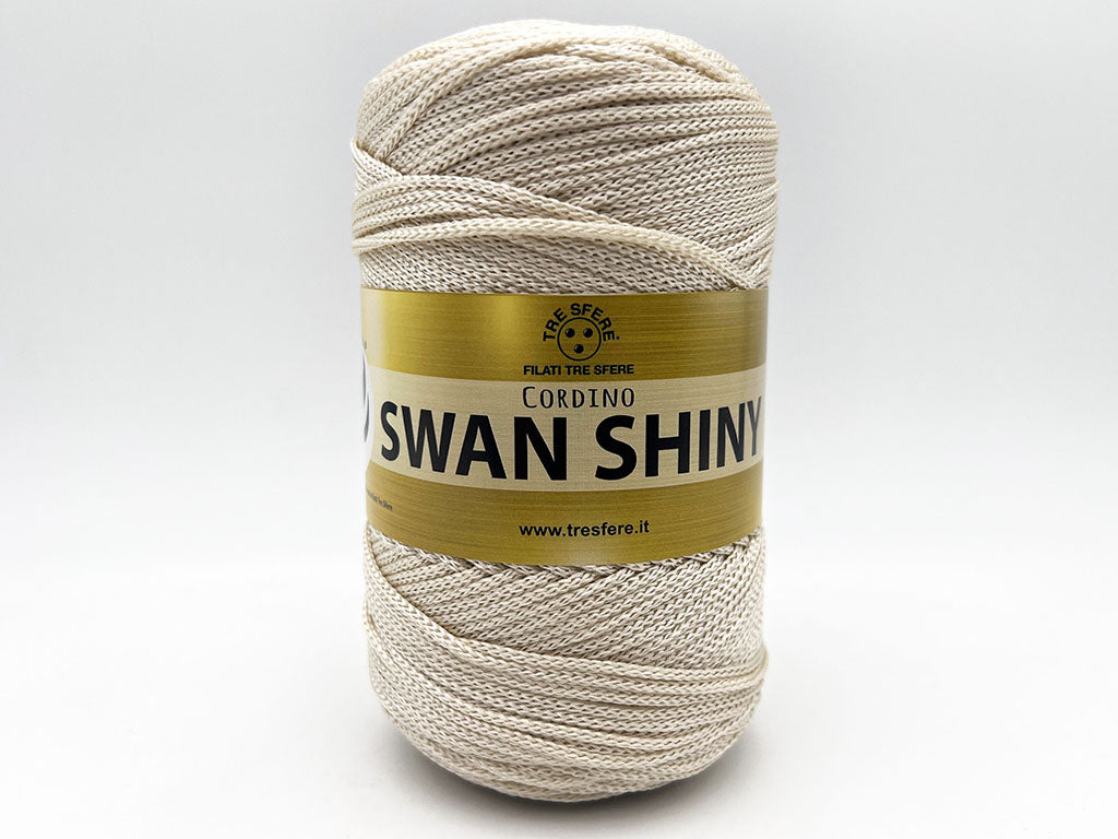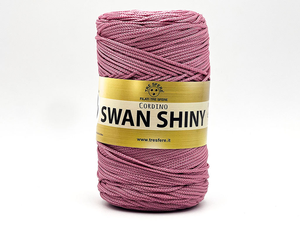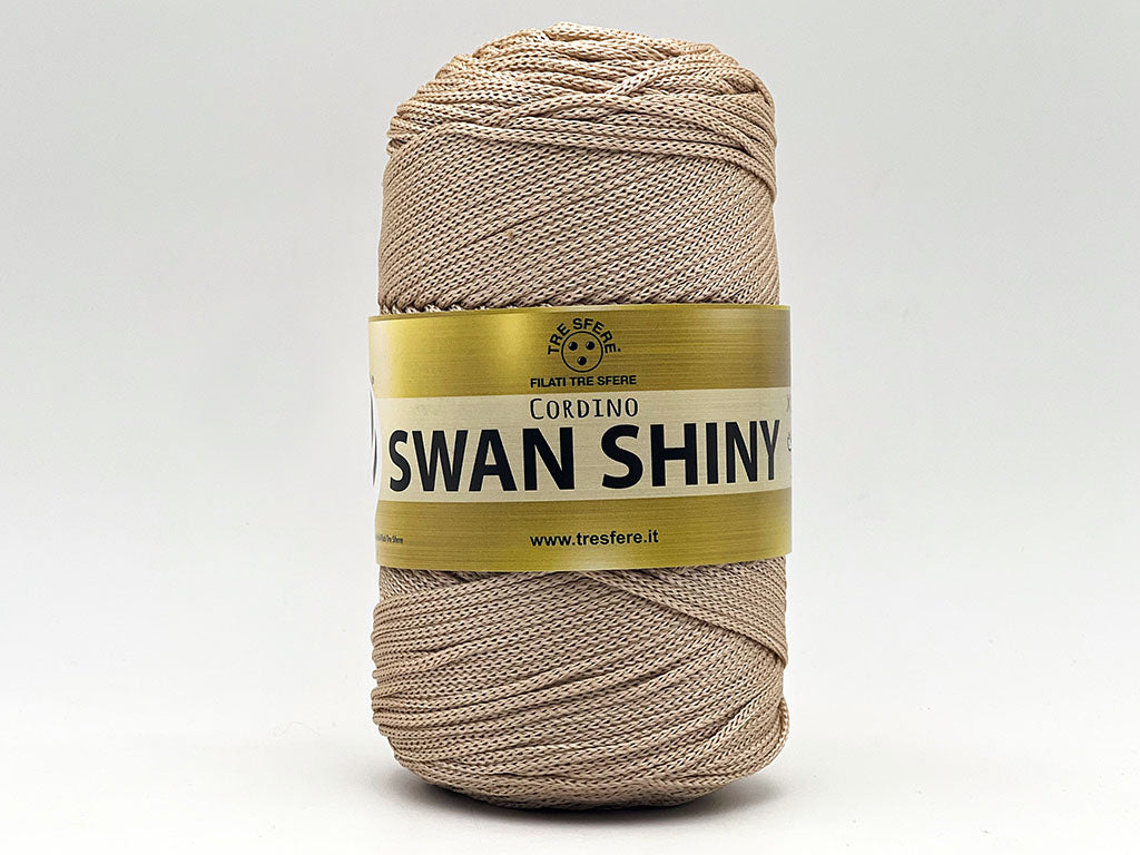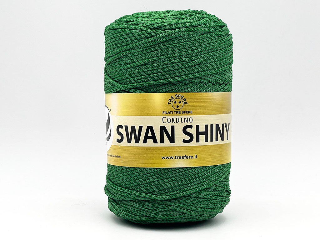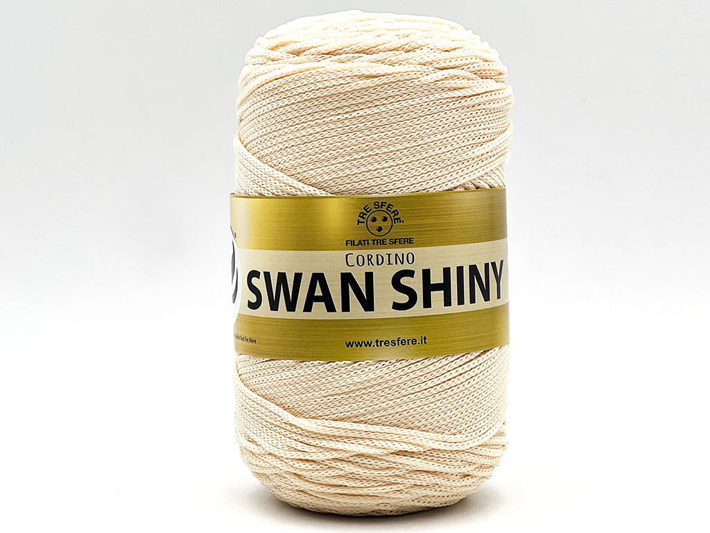 Cordino Swan Shiny, una versione più brillante del famoso Swan Black e più morbida, disponibile in rocche da 250 grammi 250 metri, spessore 2 mm, composizione 100% polipropilene, ferri uncinetti 2 mm 4 mm, fantastico per realizzare borse all’uncinetto e per lavori Handmade crochet