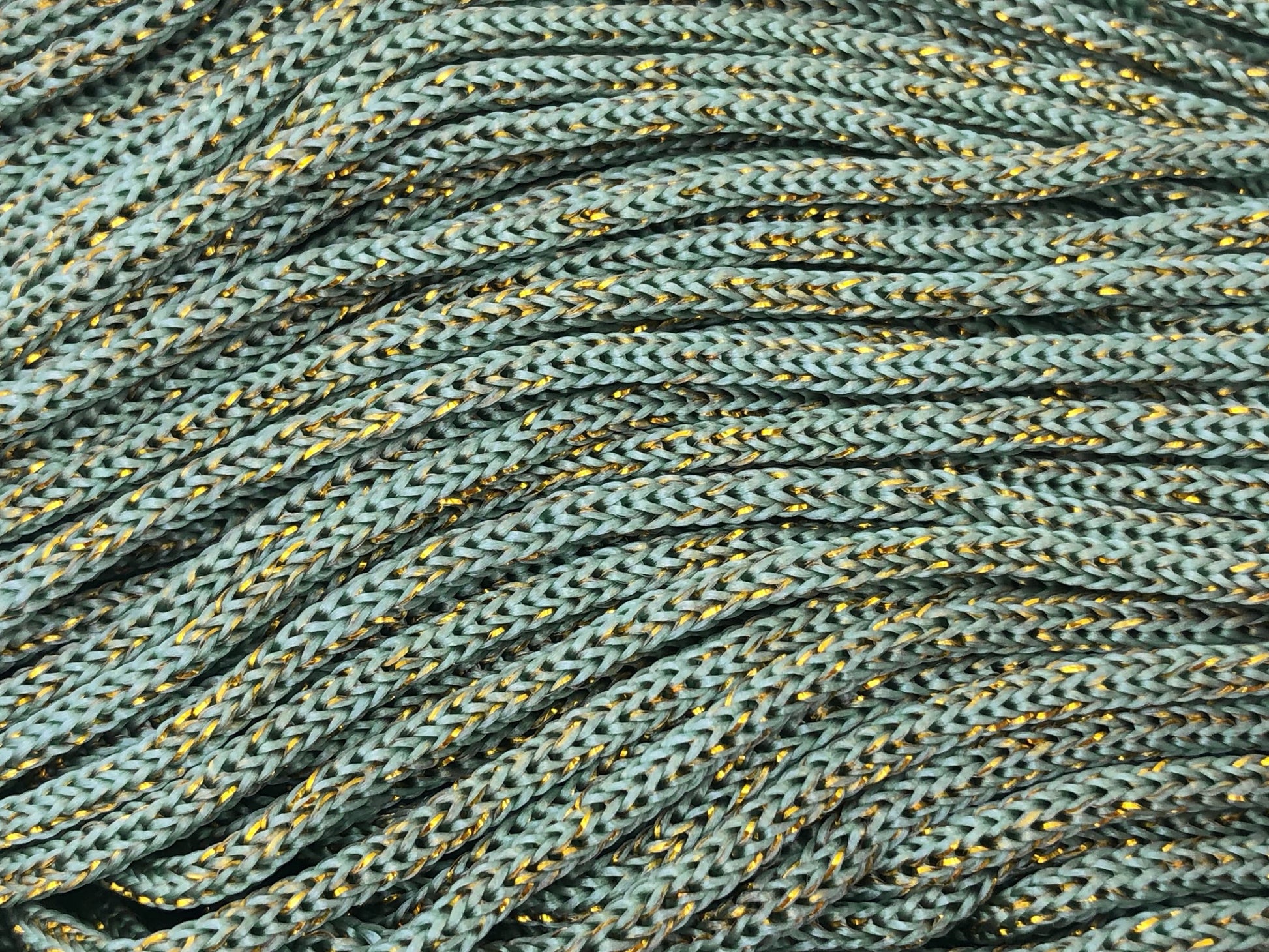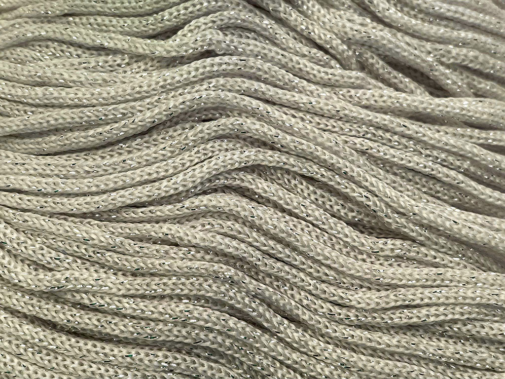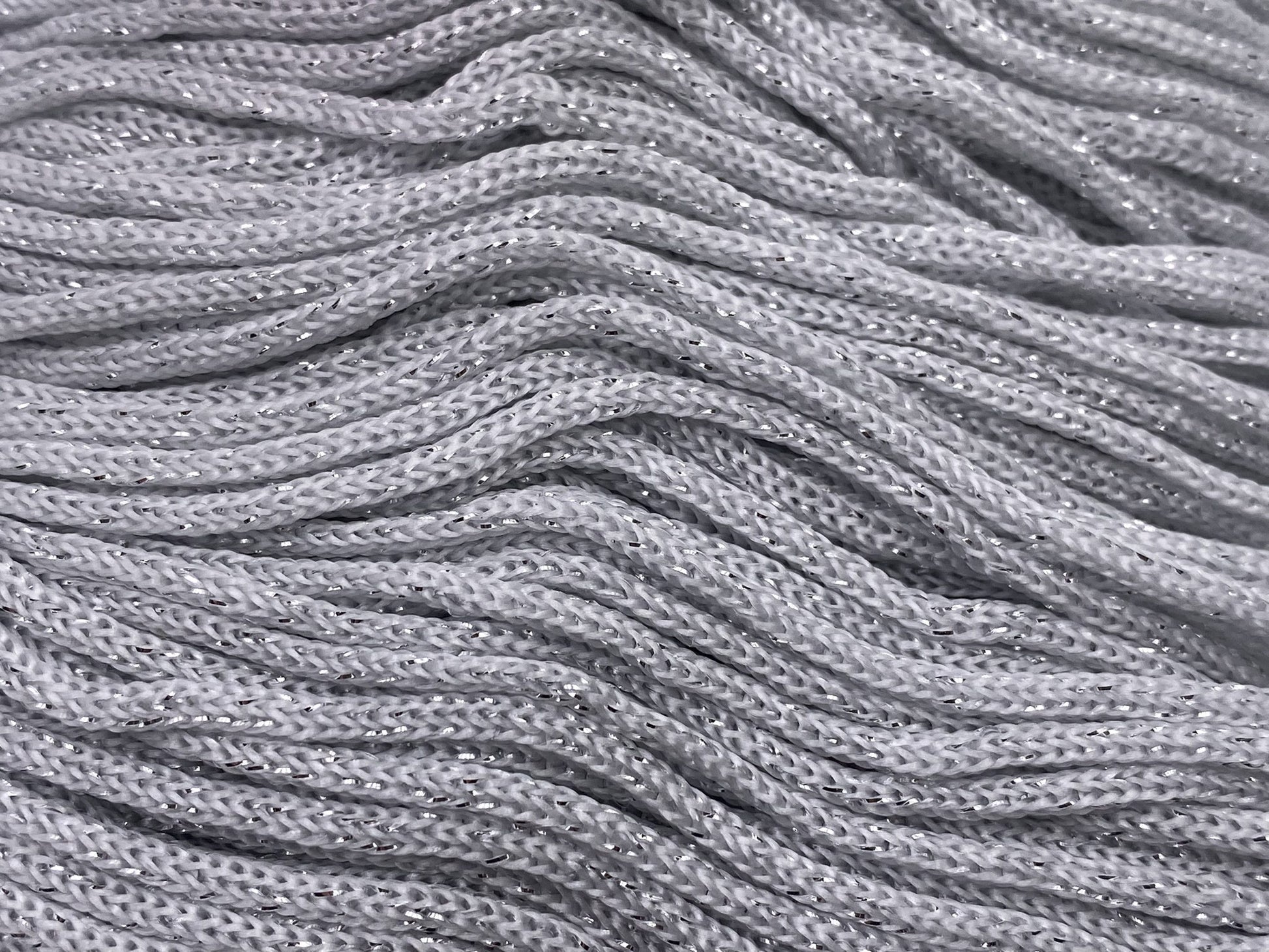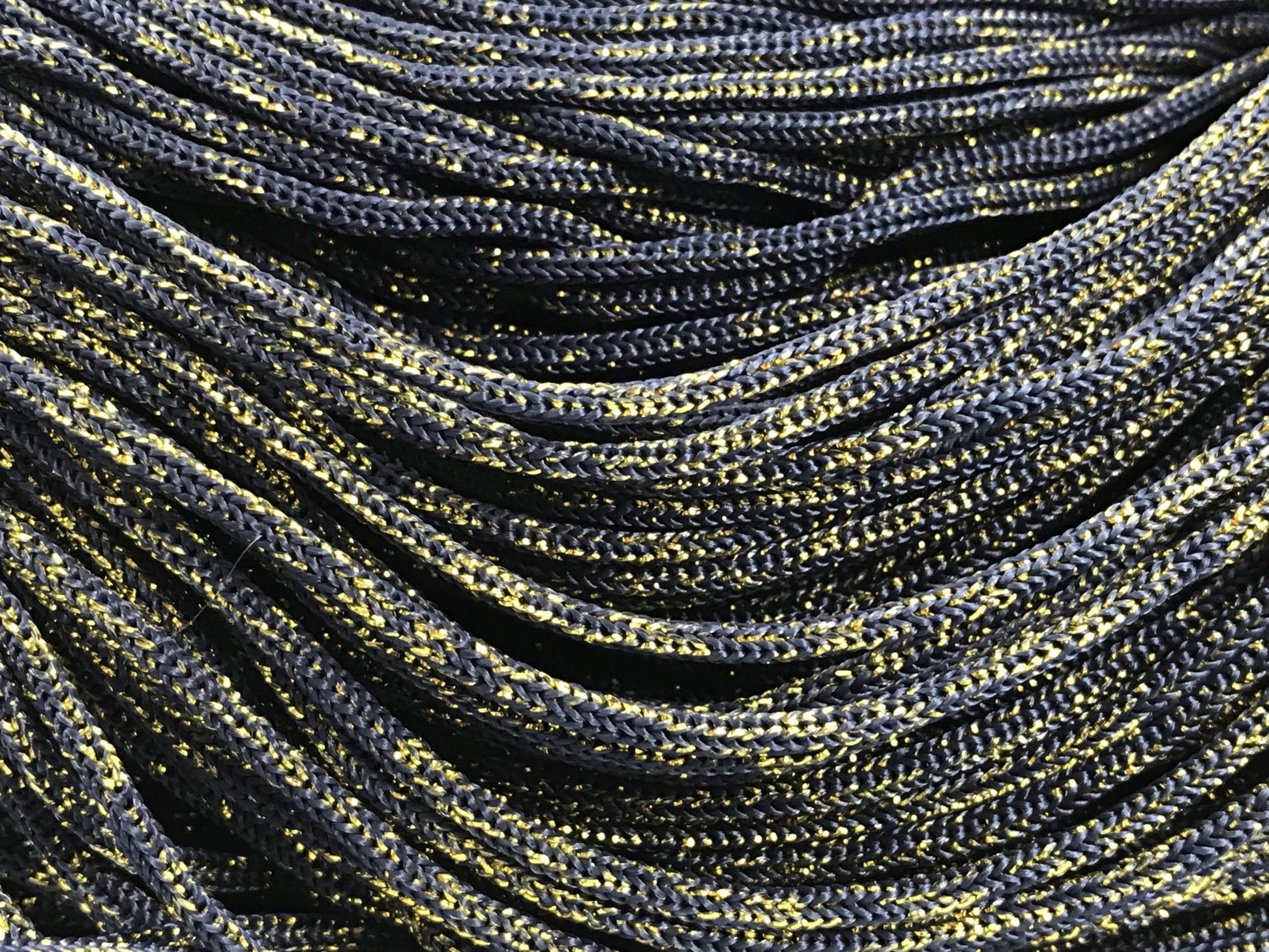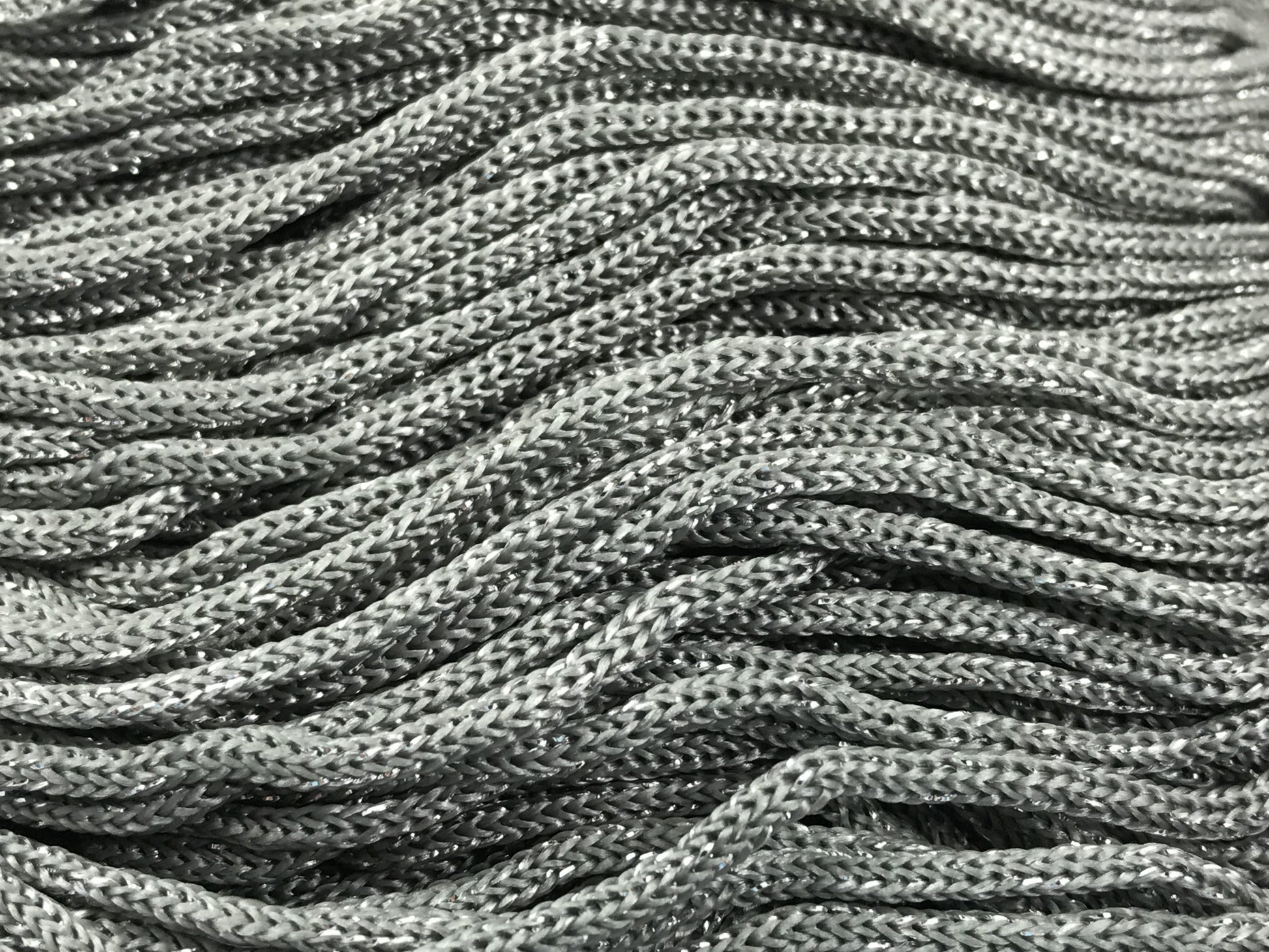 Cordino Swan Black Glitter, è il cordino thai con l”effetto glitter perfetto per realizzare splendide borse all”uncinetto e tutto ciò che la vostra fantasia vi suggerisce. Composizione 80% polipropilene 20% Poliestere