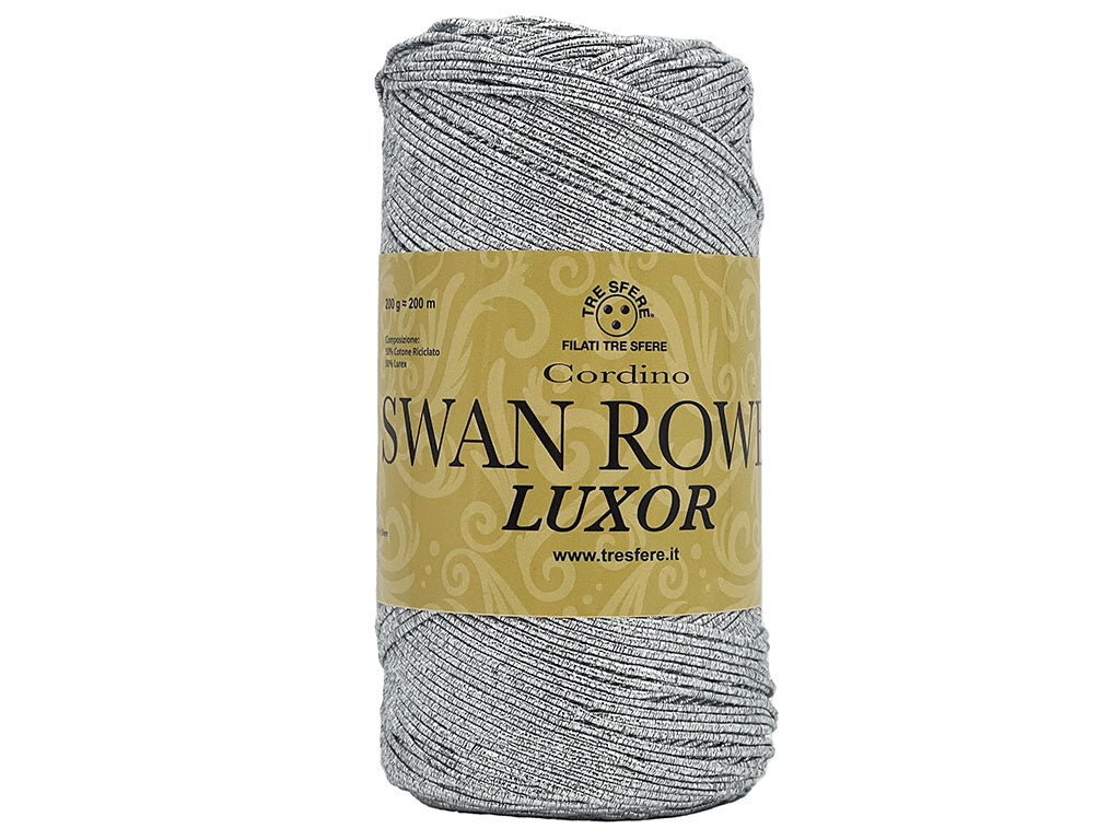 CORDINO SWAN ROWEN LUXOR 50%cotone riciclato 50%PL lurex Confezione 200 gr. 200 mt., effetto elegant luxor per realizzare borse uniche dal tono glamour,spessore 1mm, uncinetto ferri 3-4 mm